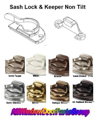 Marvin Double Hung Sash Lock and Keeper - Non-Tilt Model - Available in White, Bronze, Taupe, Brass, Antique Brass, Satin Chrome, Oil Rubbed Bronze, Satin Nickel.