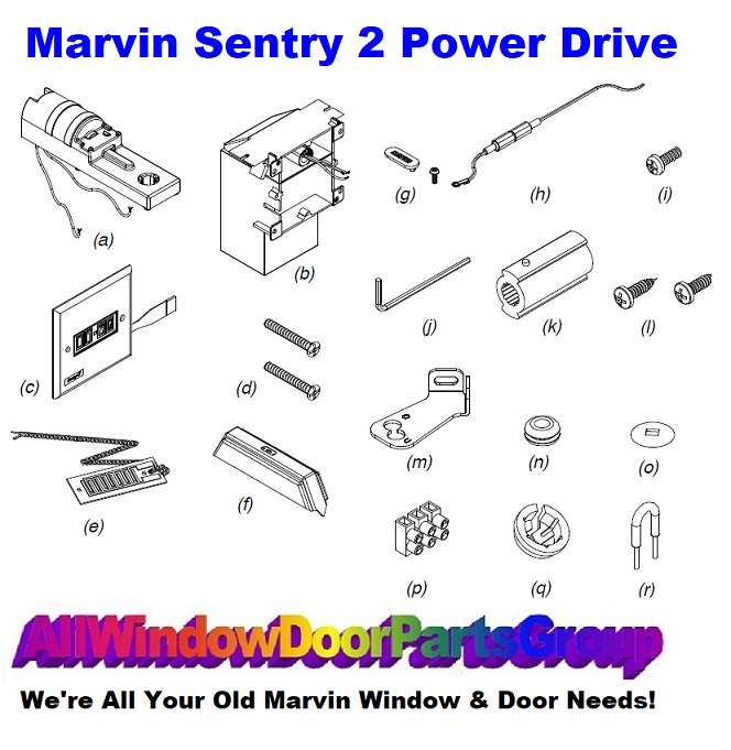 Window Motorized Drive System Assembly, Sentry2 Electric Drive for Casement and Awning windows. Replacement package consisting of parts as outlined and shown.